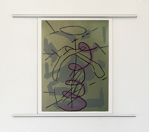 acrylic on linen in parchment bag, ca 1981/2024, 52 x 60 cm